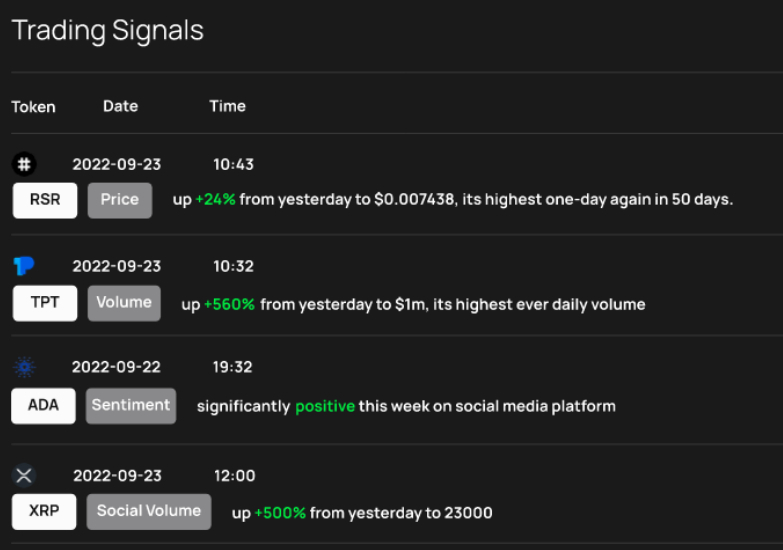 가장 흥미로운 것 중 일부는 고도로 사용자 정의 가능한 자동 거래 API, 전문가 수준의 거래 측정 및 도구, 구매자 감정/사회적 언급 추적기, 거래 전략 백테스팅을 위한 플랫폼, 구매/판매 기회를 강조 표시하는 신호 및 새로운 코인 및 교환에 대한 경고를 포함합니다. 목록.